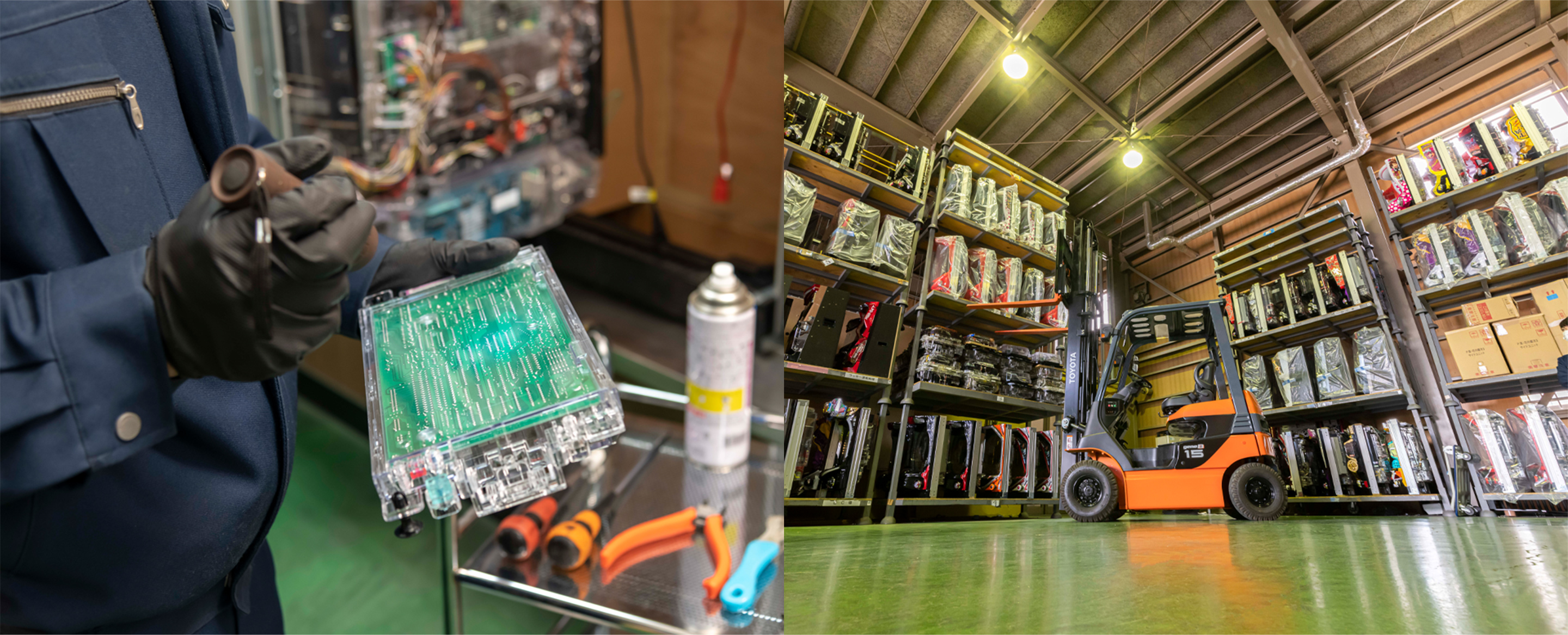 - 「新台販売」並びに「中古遊技機」の販売・買取、中古機流通に係る書類の作成、及び遊技機の移動・設置・点検業務